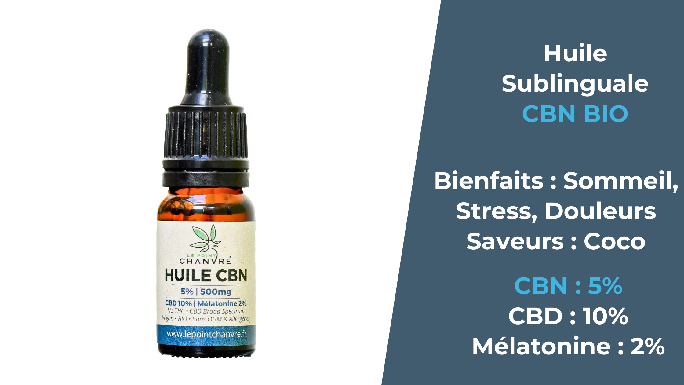 J'arrive pas à dormir que faire ? Le Point Chanvre conseille l'utilisation de l'huile CBN pour combattre l'insomnie. Son utilisation principale est de favoriser le sommeil.