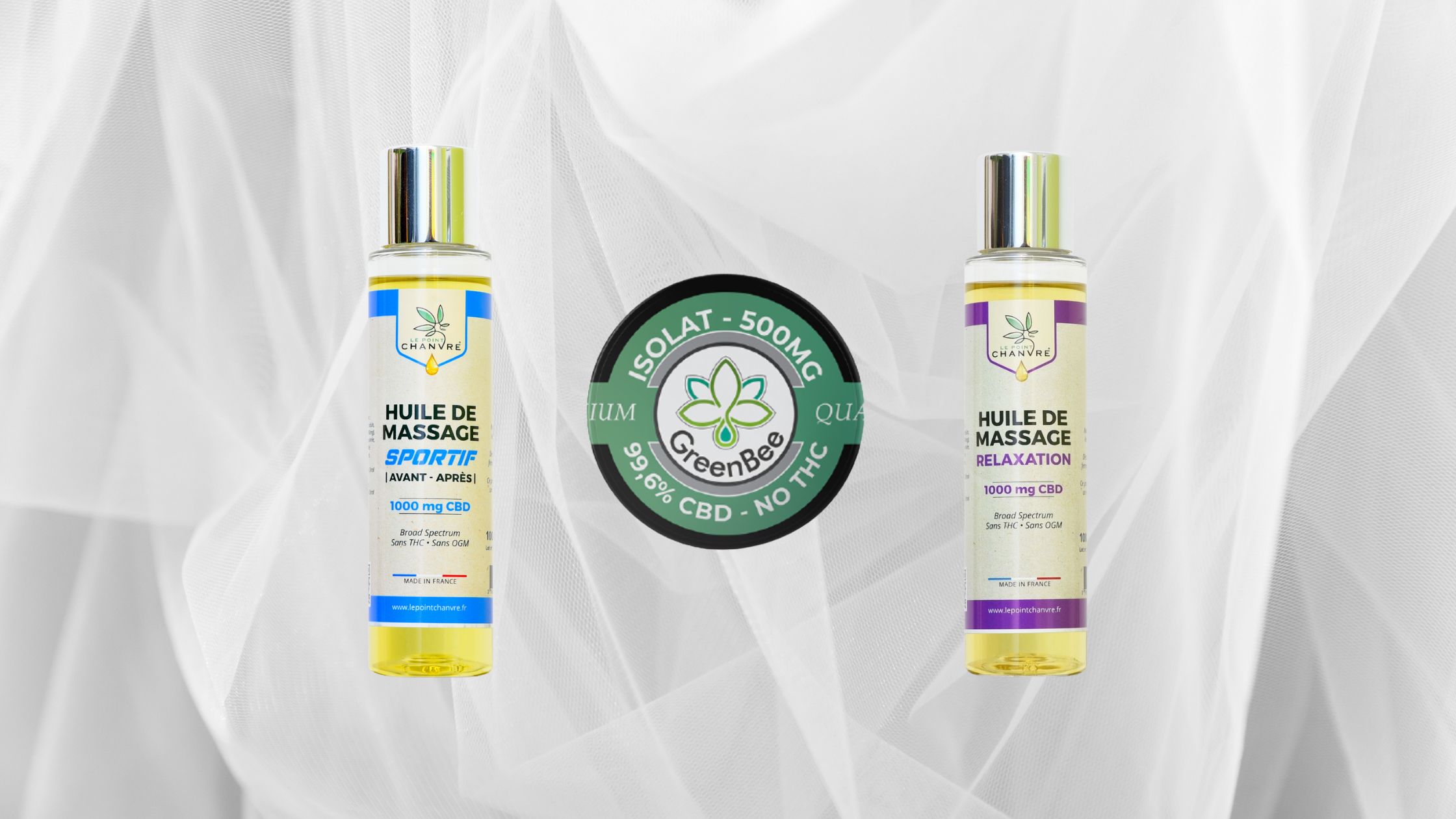 Sur notre boutique, vous trouverez l'huile de massage, qui va vous détendre grâce au CBD contenu dedans. Elle va également vous apaiser et vous calmer. Le baume Sport “GreenBee Cosmetics" est idéal pour soulager vos douleurs musculaires après une séance de sport de manière naturelle pour éviter les courbatures désagréables. Enfin, le baume Calm “GreenBee Cosmetics” vous permettra de vous détendre.